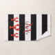 Classic nautical style stripes in black and white. Decorated with three red lobsters. Template for your name and monogram letter. Black and red coloured script.