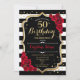 Black White Stripes Roses 50th Birthday Invitation