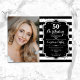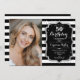 Black White Stripes Silver Photo 50th Birthday Invitation