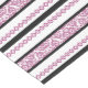 This striking pattern combines bold black and white stripes with intricate magenta accents. Alternating rows of floral motifs and paisley-inspired designs create a sense of rhythm and balance, blending modern graphic contrast with classic ornamental detail. The rich magenta flourishes stand out vividly against the crisp monochrome background, resulting in a design that feels both sophisticated and playful. Its structured yet decorative style makes it ideal for those who enjoy elegant patterns with a contemporary twist.