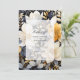 Black, white, taupe gold and shimmery gold floral wedding invitation. Ideal for a garden wedding.