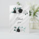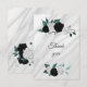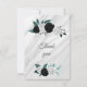 black white & teal botanical marble thank you card