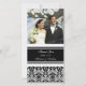 Wedding thank you photo cards in elegant and modern black and white with delicate floral damask pattern. A perfect way to thank friends and family for wedding gifts and to share your wedding photos. Available in matching postage, and many other products for your wedding.