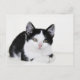 A adorable postcard with a cute black and white kitten thoughtful. You can personalise with your own special text, font and colour. Other products with this design can be found in our shop.
