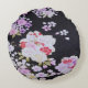 Black White Traditional Japanese Floral Flowers Round Cushion