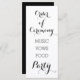 Order of ceremony - music, vows, food, party! Trendy, funny order of service, order of ceremony elegant, modern black and white script typography wedding program rack cards.