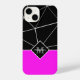 Geometric black triangles white lines retro pattern cool design with neon pink.
