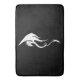 Side profile of a white tribal ink dragon in a backdrop of black.