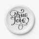 Add some pizzazz to your wedding or next party with this whimsical black and white true love typography paper plate.