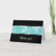 Black white and turquoise floral border Thank you greeting card. Classy, romantic and sophisticated Thank you greeting card featuring a white and tirquoise floral border along the card and dotted lines.