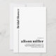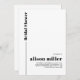 This bridal shower invitation for a chic wedding exudes sophistication with its simple black and white design. The clean and modern typography is complemented by ample white space, creating a serene atmosphere. A vertical black line on the left adds a subtle element of intrigue. The phrase 'Bridal Shower' cleverly ties the design together, while the use of minimal text, featuring the bride's name in bold, ensures clarity and ease of reading.