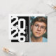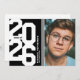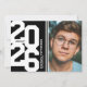 Modern black & white graduation party invitations featuring an eye-catching class year layout in a varsity font, a photo of the grad, two white stripes, their name, school, and an easily personalised party invite template, these sporty invites will make your celebration a memorable one.