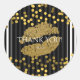 Black & White Vertical Stripes Gold Lips Kiss Classic Round Sticker