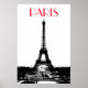 Black White Vintage Eiffel Tower Paris Travel Poster
