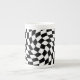 Black & White Warped Chequered Chequerboard Bone China Mug