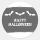 Trendy and fun Watercolor Bats Halloween Stickers with a black watercolor look background and three whimsical little white bats. These simple and modern stickers can be easily customised with your own Halloween greeting. Find more customisation options by clicking Customise It.
