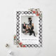 Elegant black and white photo Happy Holidays card featuring snowflakes on a black and white buffalo plaid background adorned with watercolor painting of white poinsettia, conifer tree branches, holly and red berries. Easily personalize this business photo holiday card with your photo and company name.