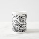 Black White Wavy Striped Bone China Mug