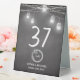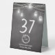 Black White Table Number Table Tent Sign with Rustic Mason Jars and String Lights.