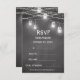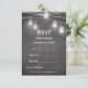 Black White Wedding Response RSVP Card with Chalkboard/Blackboard Background, Mason Jar, String Lights and handwritten/handwriting text.