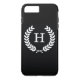 Black White Wheat Laurel Wreath Initial Monogram Case-Mate iPhone Case