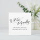 This simple-but-elegant design features a graphic that highlights a beautiful, swirling script font reading "We'll have the big wedding" which is followed by "When We Can Hug Our Beloved Guests" in a complementary, editable font. The background can be changed to any colour you prefer. Use the template fields to add your personal details and change any of my draught wording to suit your needs and situation. If you haven't set a date yet, you can click to further customise and remove the unneeded lines. If you'd rather have my help with customising, please do not hesitate to reach out. // 119 //