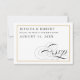 A traditional and elegant black and white calligraphy script wedding rsvp card with solid gold border. "Rsvp" script on one side with reply by date, and guest name and attendance, meal choice on the other side. Delete the lines in the text field that you don't need. You can also remove the gold border.