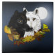 Black White Wolves Moonlight Autumn Leaves Tile
