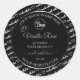 Make a lasting impression with this elegant and luxury product label design featuring a black and white word cloud border with a shimmery silver frame.