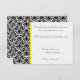 This black, white, and yellow RSVP card matches the wedding invitation shown below. The text and paper type is customisable. If you require any other matching items, please email your request to niteowlstudio@gmail.com.