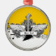Black white yellow electric guitar with wings keepsake ornament, featuring an electric guitar, wings, flames and swirls on music pentagram, notes and treble clef on yellow background. A great gift for a musician, guitar player or lover.