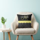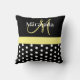 Black White Yellow Monogram Script Polka Dots Cushion