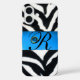 BLACK WHITE ZEBRA FUR AQUA BLUE GEM MONOGRAM Case-Mate iPhone CASE