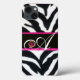 BLACK WHITE ZEBRA FUR FUCHSIA PINK GEM MONOGRAM, Case-Mate iPhone CASE