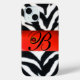 BLACK WHITE ZEBRA FUR RED GEM MONOGRAM, Case-Mate iPhone CASE