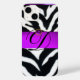 BLACK WHITE ZEBRA FUR VIOLET PURPLE GEM MONOGRAM, Case-Mate iPhone CASE