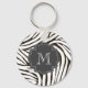 Black White Zebra Print white chic trendy girly monogram personalised key chain