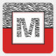 Why hide your wild side? Show it off with a zebra print monogram! In addition to the black and white zebra monogram, this design features matching zebra print on the top half and red on the bottom. That's inside of double-bordered red, black, and white box. Red HEX: #CF0202