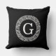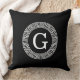 Black Wht Greek Key Rnd Frame Initial Monogram Cushion