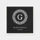 Black Wht Greek Key Rnd Frame Initial Monogram Napkin