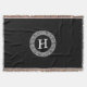 Black Wht Greek Key Rnd Frame Initial Monogram Throw Blanket