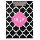 Black Wht Moroccan #5 Hot Pink #2 Name Monogram Clipboard