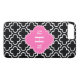 Black Wht Moroccan #6 Hot Pink 3 Initial Monogram Case-Mate iPhone Case
