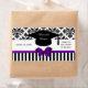 Black White Stripe Damask Purple Bow Ribbon Party Water Bottle Label - Graduation Party