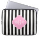 Black Wht Stripe Pink Quatrefoil 3 Monogram Laptop Sleeve