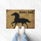 Personalise with your name, name of your country home or ranch. Pretty black stallion in a rustic paint effect on brown rustic background.