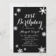 A sprinkling of snowflakes decorates this fun birthday party invitation, on a classic black background. If additional coordinating items are needed for your event, just contact us at prettyfancyinvites@gmail.com with your request.