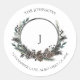 Black Winter Pinecone Berry Wreath Monogram Classi Classic Round Sticker