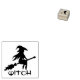 A personalised cute black witch wood art stamp and a broomstick. Craft and scrapbooking, birthday parties ideas.