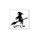 Black Witch Silhouette Broomstick Wood Rubber Stamp